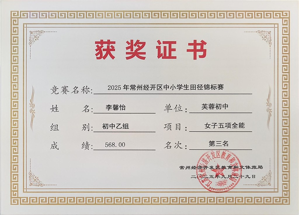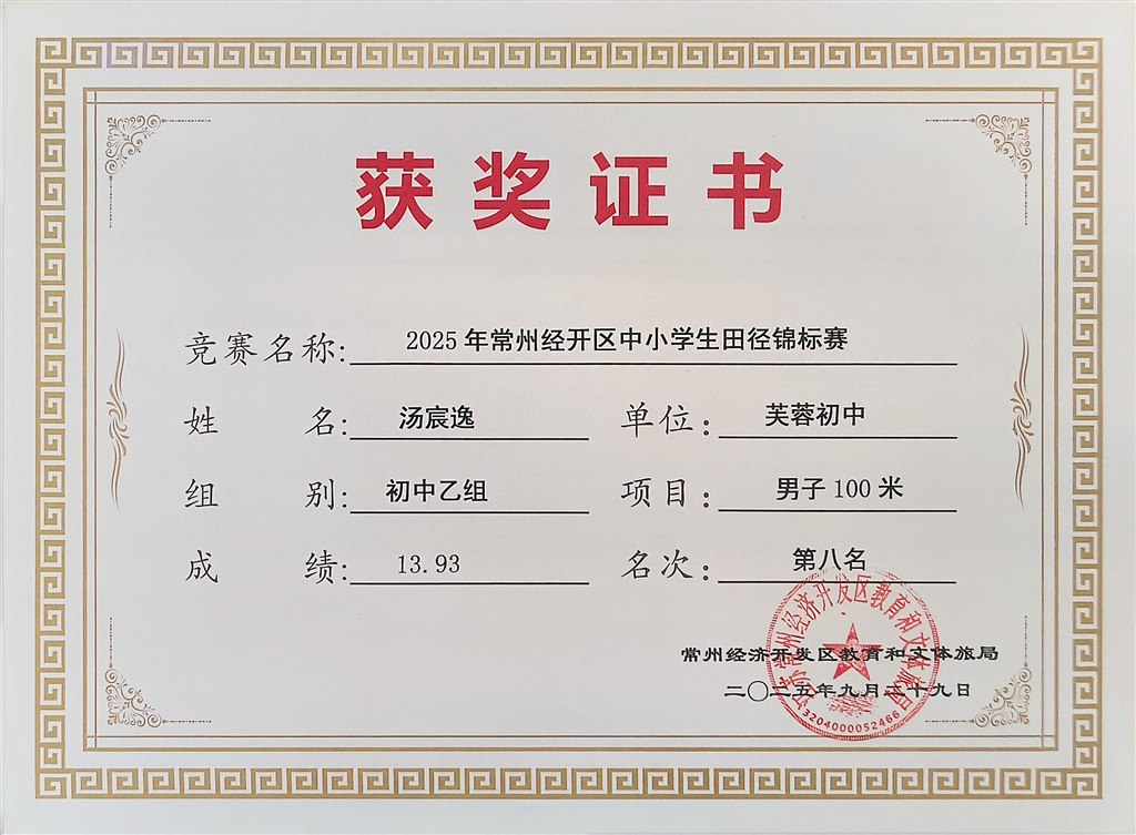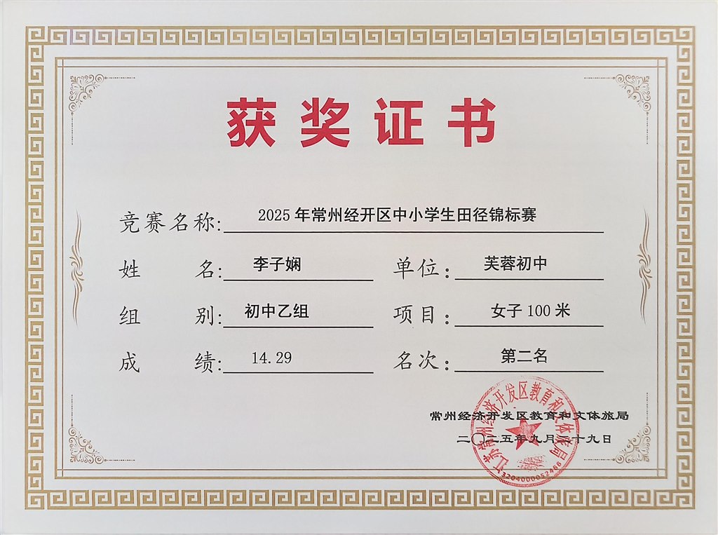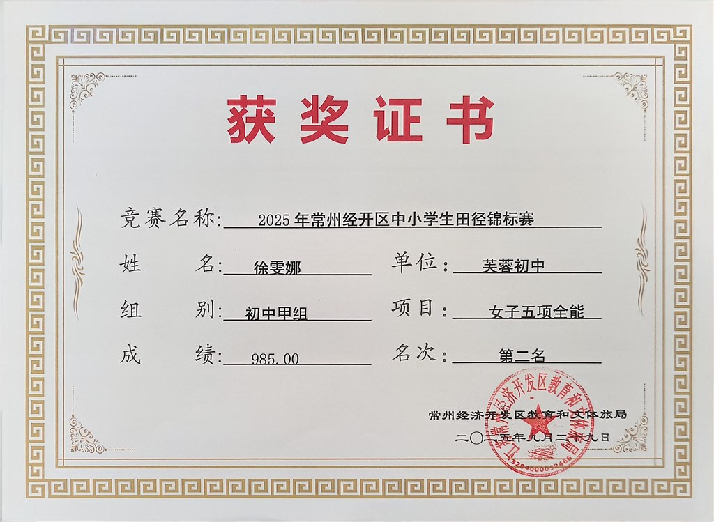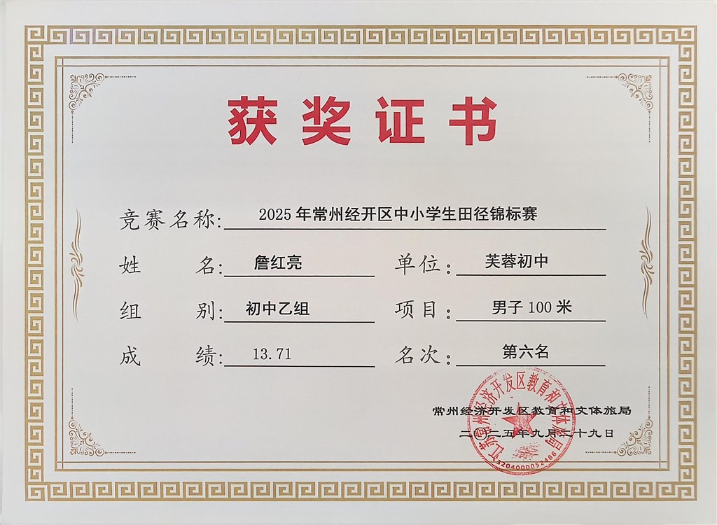 2025.9区中小学生田径锦标赛获奖
