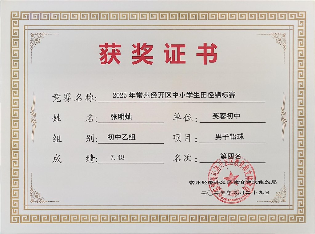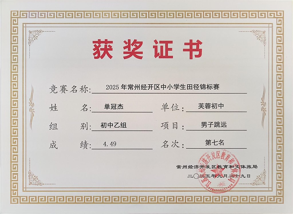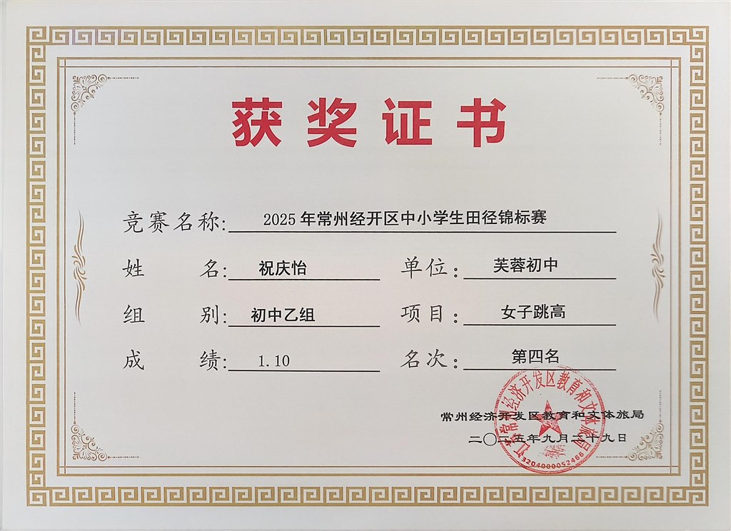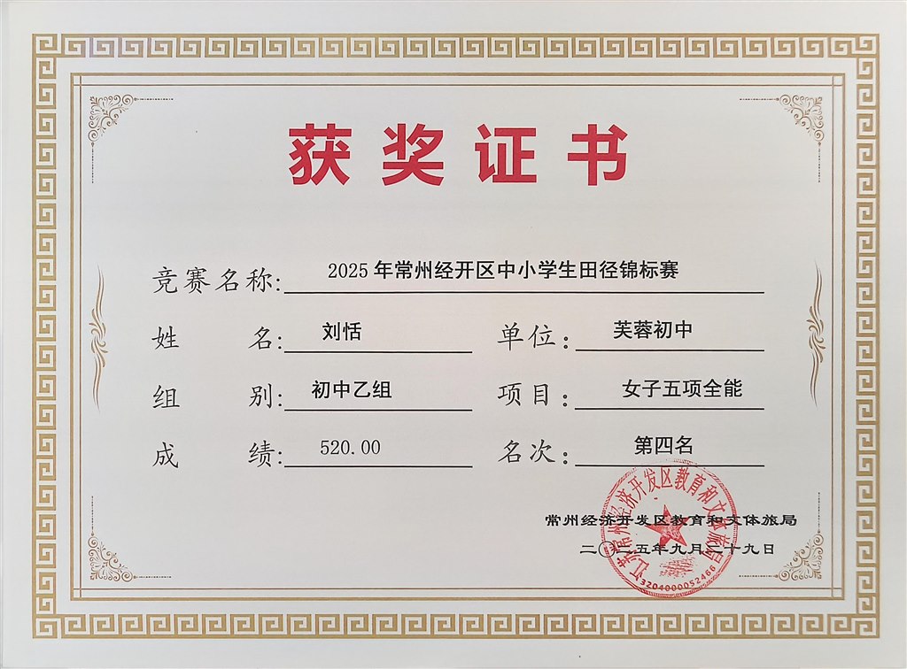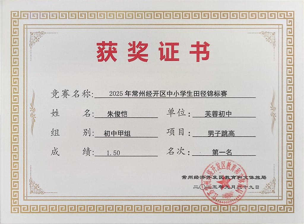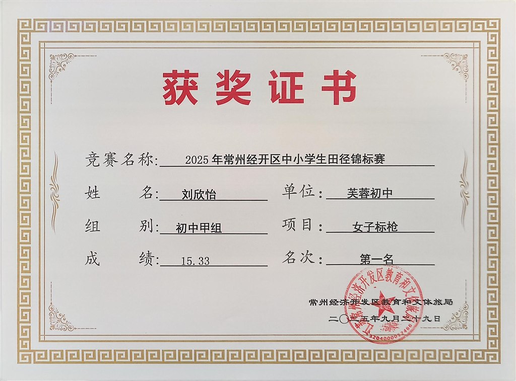 2025.9区中小学生田径锦标赛获奖